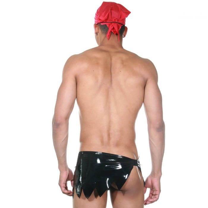 Мужской костюм пирата, состоящий из черной набедренной повязки, красной банданы и черного окклюдера - повязки на глаза. В комплекте: набедренная повязка, бандана, повязка на глаз.