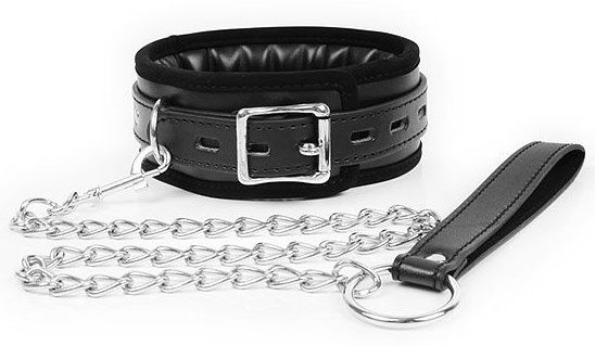 Великолепный БДСМ-аксессуар для любителей нестандартных эротических забав. В комплект входит ошейник с возможностью регулировки размера с помощью ремешков и металлическая цепочка-поводок с ручкой-петлёй, который при желании можно отстёгивать. Внутренняя поверхность ошейника имеет мягкую накладку, препятствующую натиранию кожи.