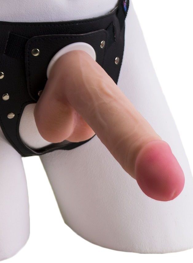 Нет лучшего способа поставить своего мужчину на колени, чем покупка страпона. Пикантная игрушка подарит незабываемые впечатления, позволит показать ему, что такое жесткий секс. Страпон состоит из трусиков Харнесс и невероятно реалистичного дилдо телесного цвета из неоскин. У него большая выраженная головка, немного выпуклые вены, подчеркивающие реалистичность игрушки. Если 16 сантиметров станет для нижнего мало, и он снова станет непослушным, вы сможете сменить насадку, продемонстрировав, кто в доме главный.