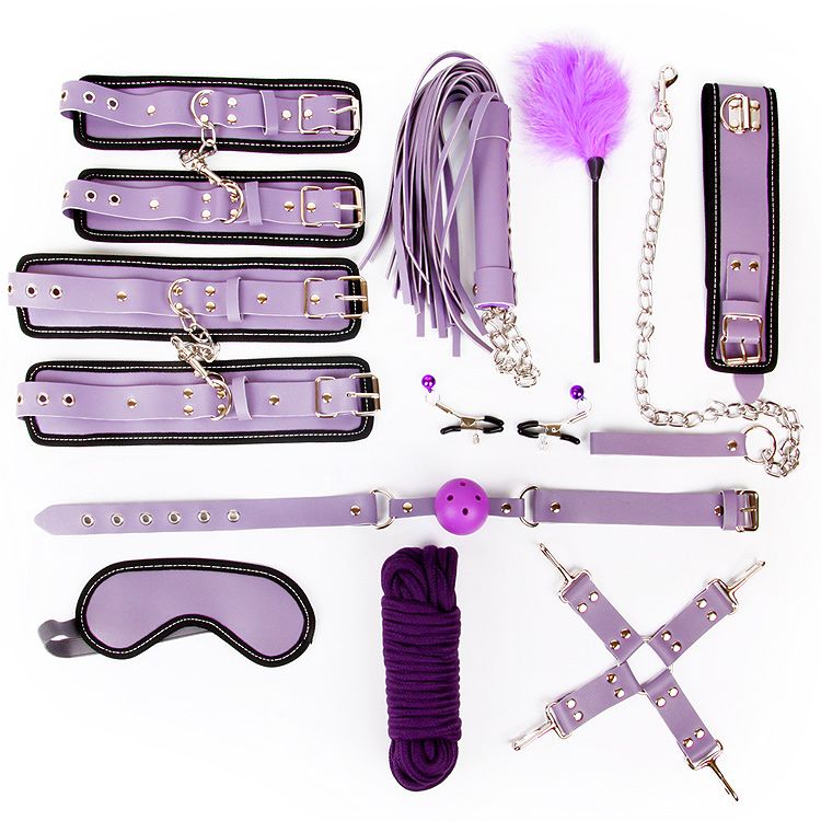 Великолепный набор аксессуаров для любителей БДСМ. Наручники, оковы, ошейник и маска снабжены специальной внутренней накладкой, предотвращающей натирание кожи. Также изделия имеют возможность регулирования размера. Плеть-флогер состоит из хвостов и удобной рукоятки с петлёй-цепочкой для подвешивания на крючок. Зажимы для сосков имеют эластичные накладки, которые препятствуют сильному сдавливанию сосков. На каждом изделии предусмотрен регулировочный винт, позволяющий контролировать силу сдавливания сосков. Подвески-бусинки дают небольшой эффект утяжеления и украшают зажимы. Кляп оснащён шариком с отверстиями для дыхания. Щекоталка состоит из тонкой ручки и густого пушка. В комплекте: наручники, оковы, ошейник с поводком, верёвка, фиксатор, плётка, кляп, маска, зажимы для сосков, щекоталка.