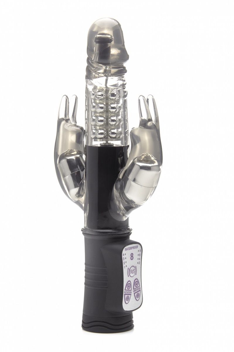 Хай-тек вибратор для страстных ценительниц многофункциональных и стильных секс-игрушек. Стимулятор состоит из трех элементов – фаллоимитатора с сочной головкой посередине и двух отростков для интенсивных ласк клитора и ануса в виде зайчиков. Вибратор целиком водонепроницаем и оснащен 8 режимами работы (ротация и вибрация). Режимы управляются на рукояти вибратора. Рабочая длина - 11,5 см. Батарейки в комплекте.