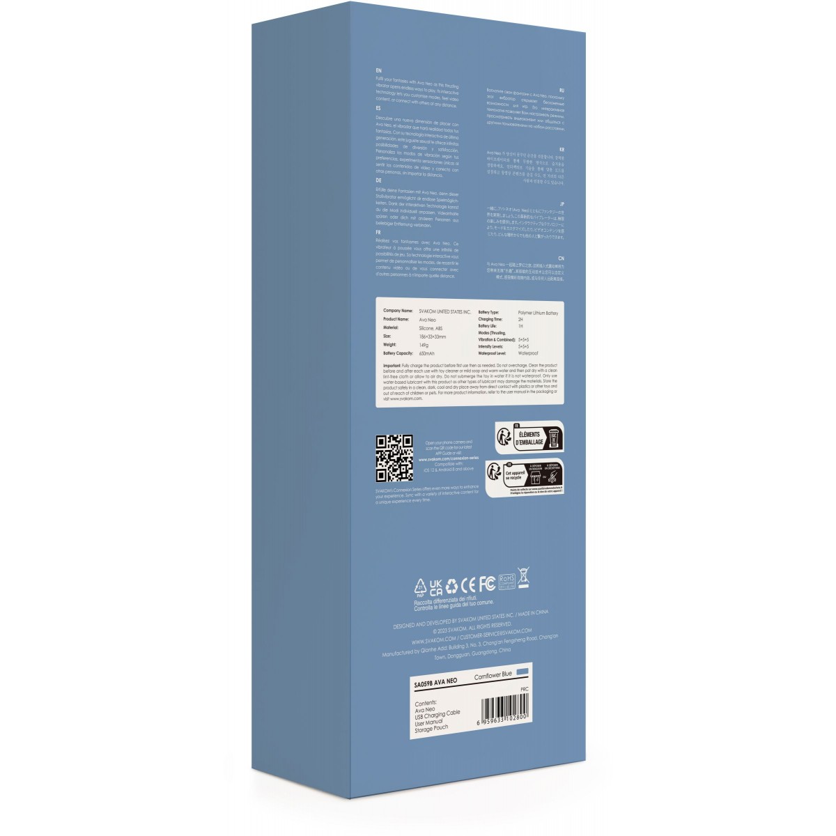 Испытайте абсолютно новый вид стимуляции с Ava Neo. Благодаря разнообразию режимов и интенсивностей, Ava может стать вашим личным сквирт-экспертом или проводником в мирт ярких оргазмов. Выбирайте легко. Дерзкие и игривые толкающие движения головки Ava Neo? Или мощные, проникающие в самые глубины виброволны Ava Neo? А может и то и другое вместе? Можно! Используйте их синхронно или по отдельности, чтобы погрузиться в незабываемое путешествие, или остановитесь на одной, для плавного изучения своих ощущений. Двойное нажатие S поможет вам определиться, чего вам хочется больше всего. Исследуйте пять различных режимов движений, а также 5 уровней интенсивности. Какими бы ни были ваши предпочтения, Ava Neo готов отправить вас в мир удовольствия. Приложение Svakom App откроет дверь в мир бесконечного количества режимов и вариантов получения наслаждения. Ava Neo позволяет забыть о подзарядке, ведь ее точно хватит для одной сессии и даже больше! Укомплектованный магнитной зарядкой, Ava Neo быстро заряжается, чтобы вы могли насладиться девайсом, когда захотите. Не боясь влаги. Ava Neo абсолютно водостойкий, поэтому теперь не стоит беспокоиться о том, брать с собой ваш любимый девайс в ванную комнату или нет.